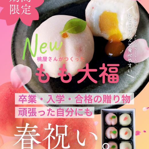 お知らせ お知らせ(通販) 商品紹介 「もも大福」 受付開始!! お知らせ / お知らせ(通販) / 商品紹介 2026年2月27日 もも大福」 今年も受付開始しました!! **ヤマシタのやさしくとろける...