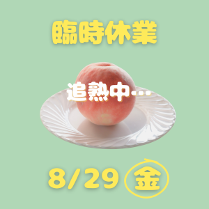 8/29㊎ 桃の追熟時間をいただくため、臨時休業といたします。