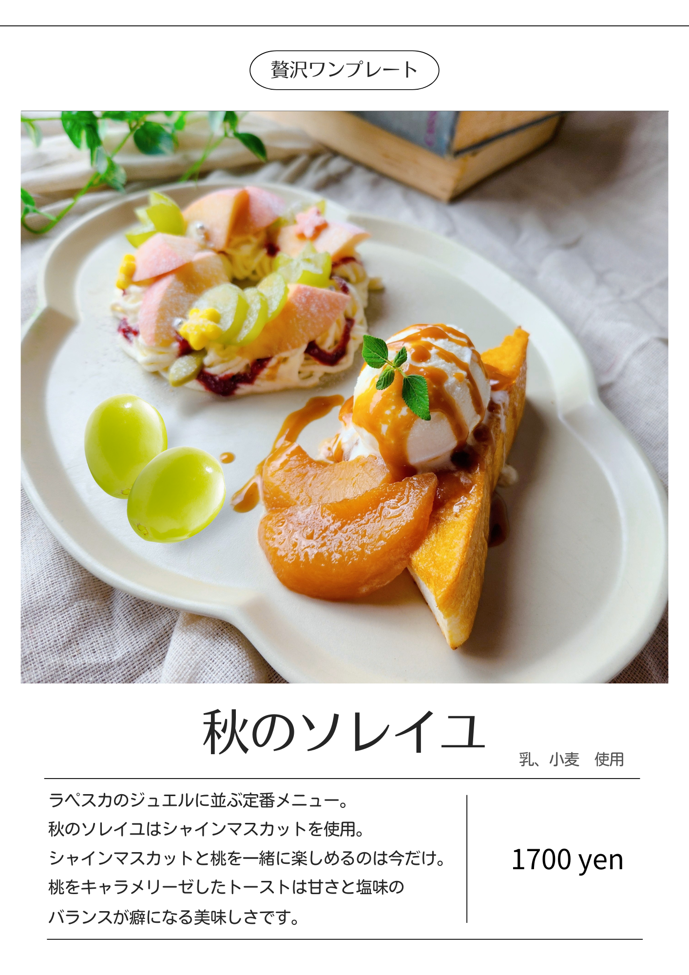 新鮮な桃をそのまま贅沢にたっぷりと使ったメニューは桃農家ならでは。